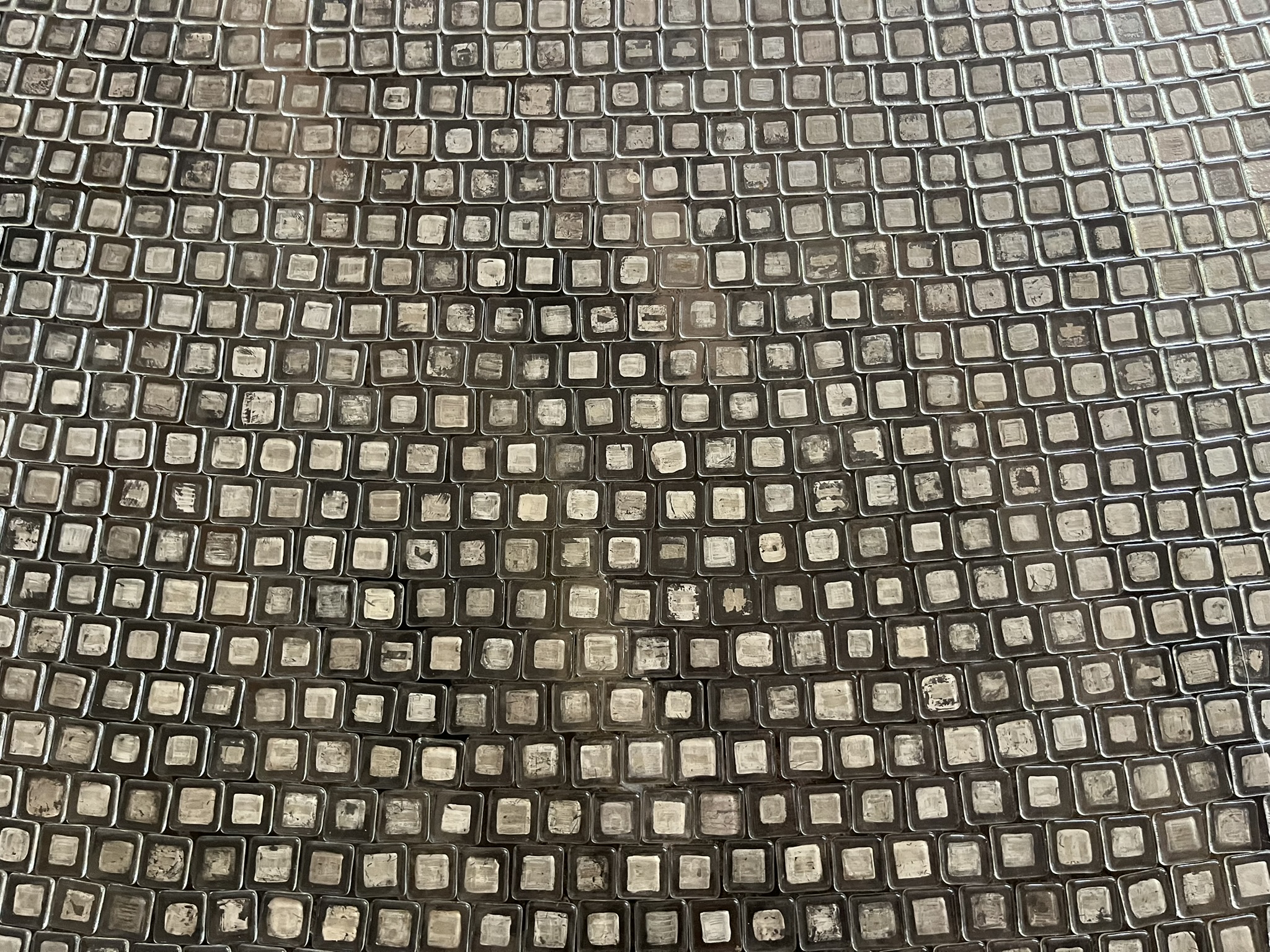 以前は東日本大震災で残った「奇跡の一本松の根」が展示されていたそうですが、今回は「18800 pieces 2012.6.13」という、被災した人の数のガラスタイルを敷き詰めたインスタレーション作品が展示されていました。