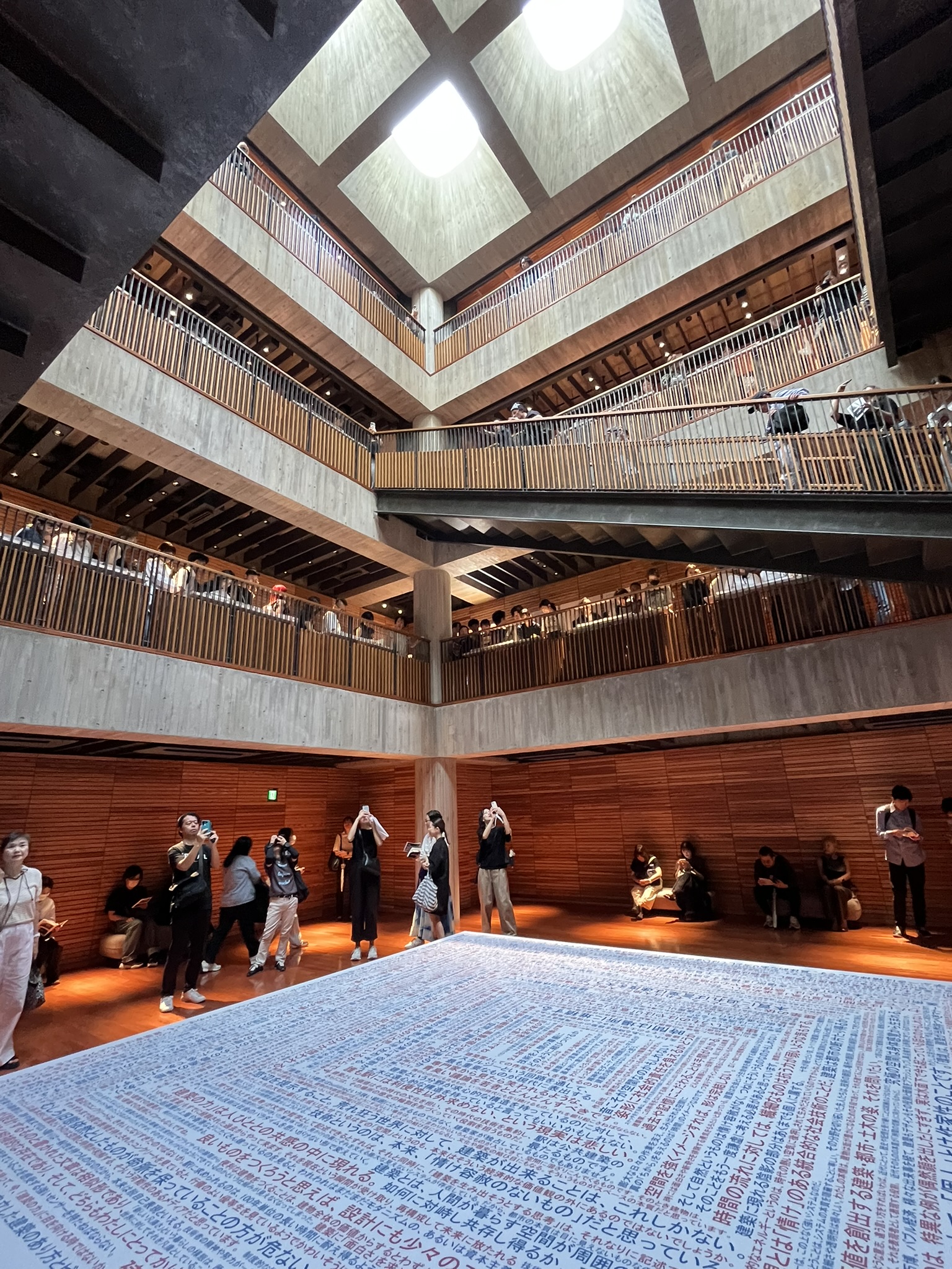 各フロアの外周の壁に主要作品の図面、吹抜側に内藤さんの手帳が展示されていました。